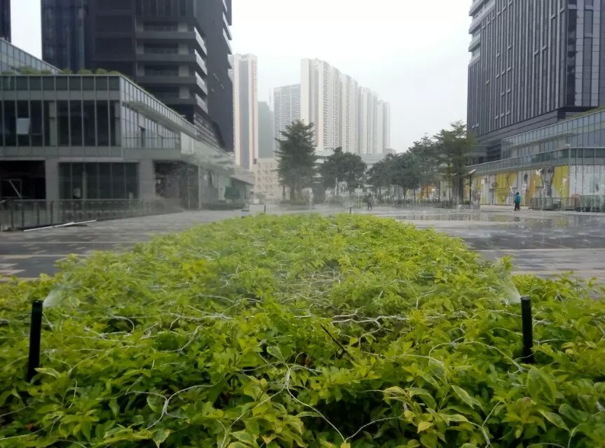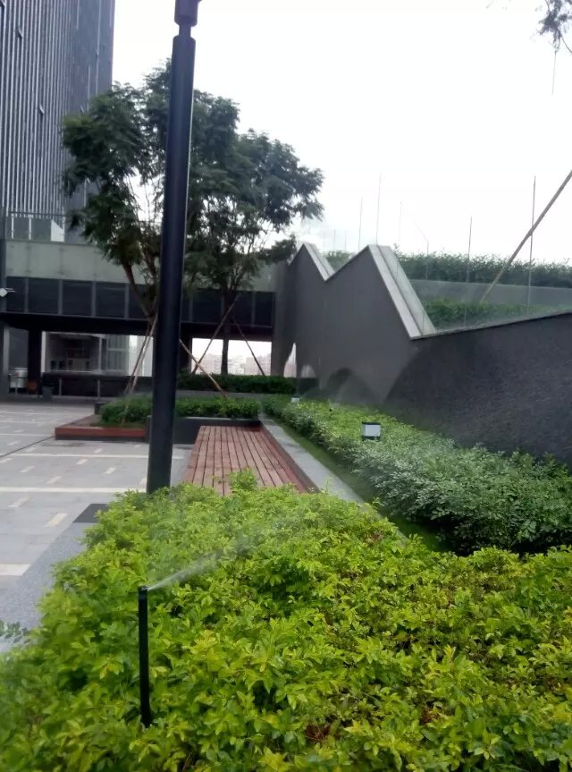 下圖為華為在天安云谷的辦公場所,其樓前草坪及樓層平臺(tái)綠化灌溉均采用了亨特灌溉系統(tǒng)。