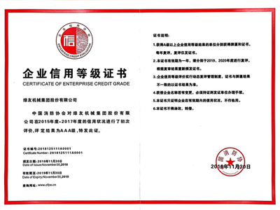 11月30日,綠友集團被中國消防協(xié)會評定為AAA信用等級企業(yè)。