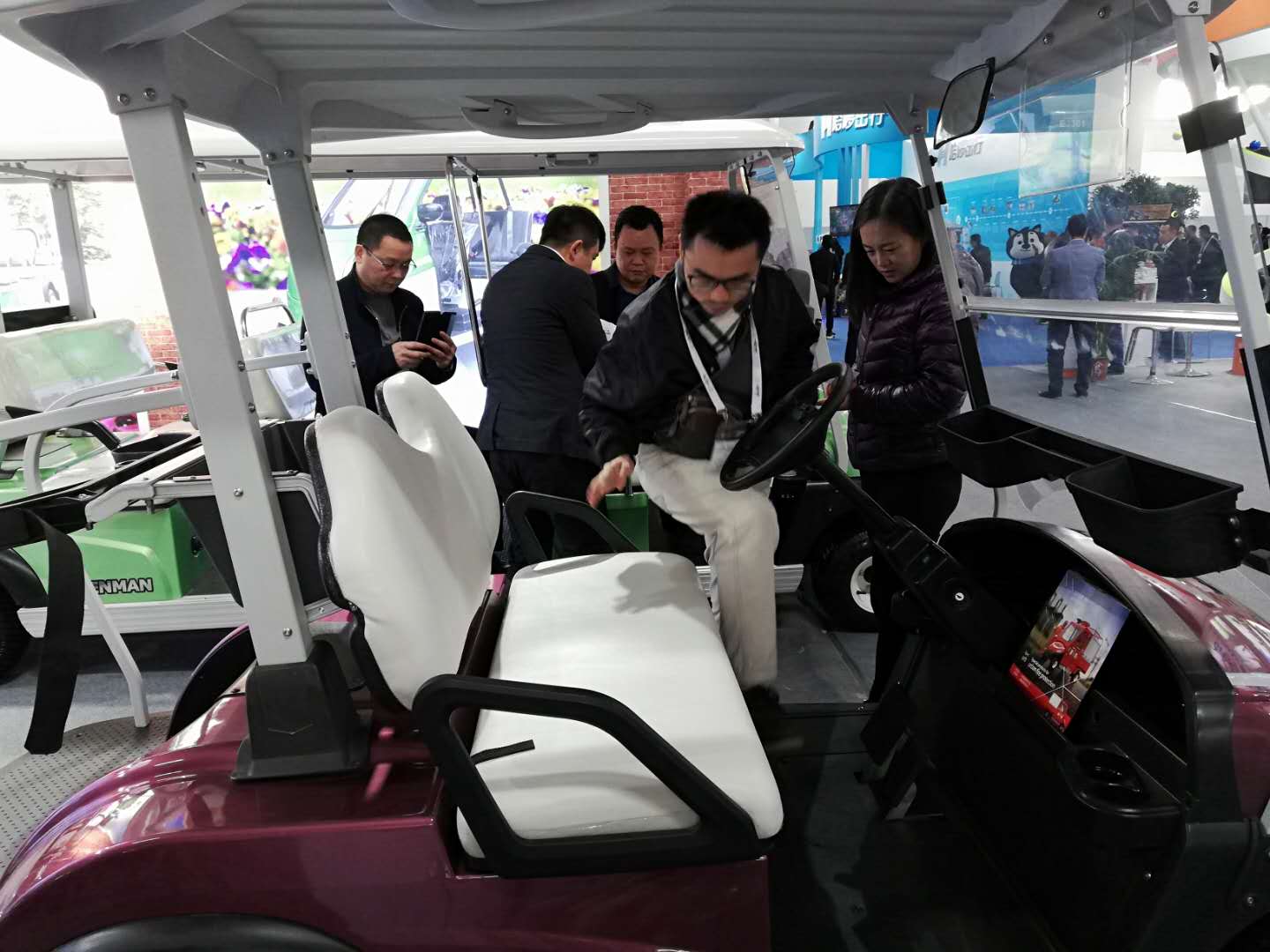 展會上,我公司電動車輛吸引了眾多參觀者的目光,來自景區(qū),游樂場等各行各業(yè)有合作意向的專業(yè)客戶和我公司工作人員進行詳細地咨詢與洽談。