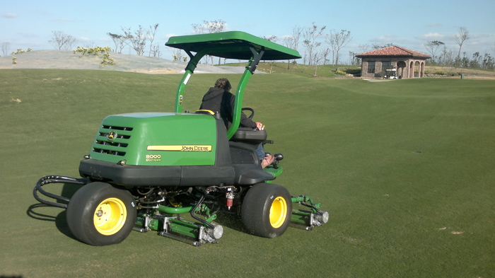 為打造頂級(jí)錦標(biāo)賽事球場(chǎng),從設(shè)計(jì)建造至今,覽海國(guó)際高爾夫俱樂(lè)部配備了綠友提供的草坪養(yǎng)護(hù)設(shè)備,一應(yīng)俱全。高端上檔次的配置,為日后草坪的養(yǎng)護(hù)提供了堅(jiān)強(qiáng)的保障,其中美國(guó)迪爾公司的8000E混合動(dòng)力坐騎式五聯(lián)球道剪草機(jī)就成了其中的一大“功臣”。18英寸QA5刀組,兼?zhèn)湎冗M(jìn)的油電混合技術(shù),起早摸黑,征服了連綿起伏的球道,贏得了俱樂(lè)部草坪總監(jiān)及其團(tuán)隊(duì)的一致肯定。馳騁美巡,盼其再續(xù)輝煌征程。