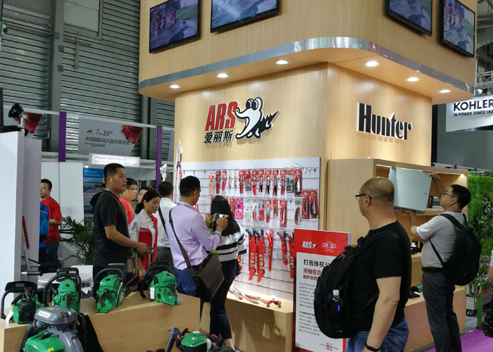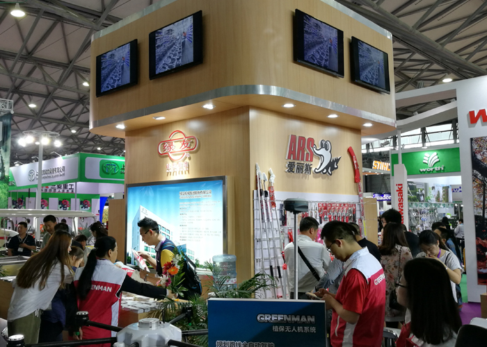 設(shè)備展示區(qū)更是吸引了眾多專業(yè)觀眾的眼光,綠友集團(tuán)展示了自主研發(fā)、生產(chǎn)以及代理的剪草機(jī)、打藥機(jī)、灌溉系統(tǒng)、冷霧系統(tǒng)、電動(dòng)車輛、粉碎機(jī)、無人機(jī)、園藝工具、植保用品等十多種產(chǎn)品。期間,綠友集團(tuán)展位上一直人潮涌動(dòng),自產(chǎn)設(shè)備引來諸多關(guān)注。有問粉碎機(jī)的,有了解大型零轉(zhuǎn)彎剪草機(jī)的,有被冷霧系統(tǒng)所吸引的,有圍觀無人機(jī)的,更有很多觀眾現(xiàn)場(chǎng)購(gòu)買愛麗斯園藝工具。綠友工作人員不知疲倦地解答著各種各樣的問題,也收獲了大量訂單。