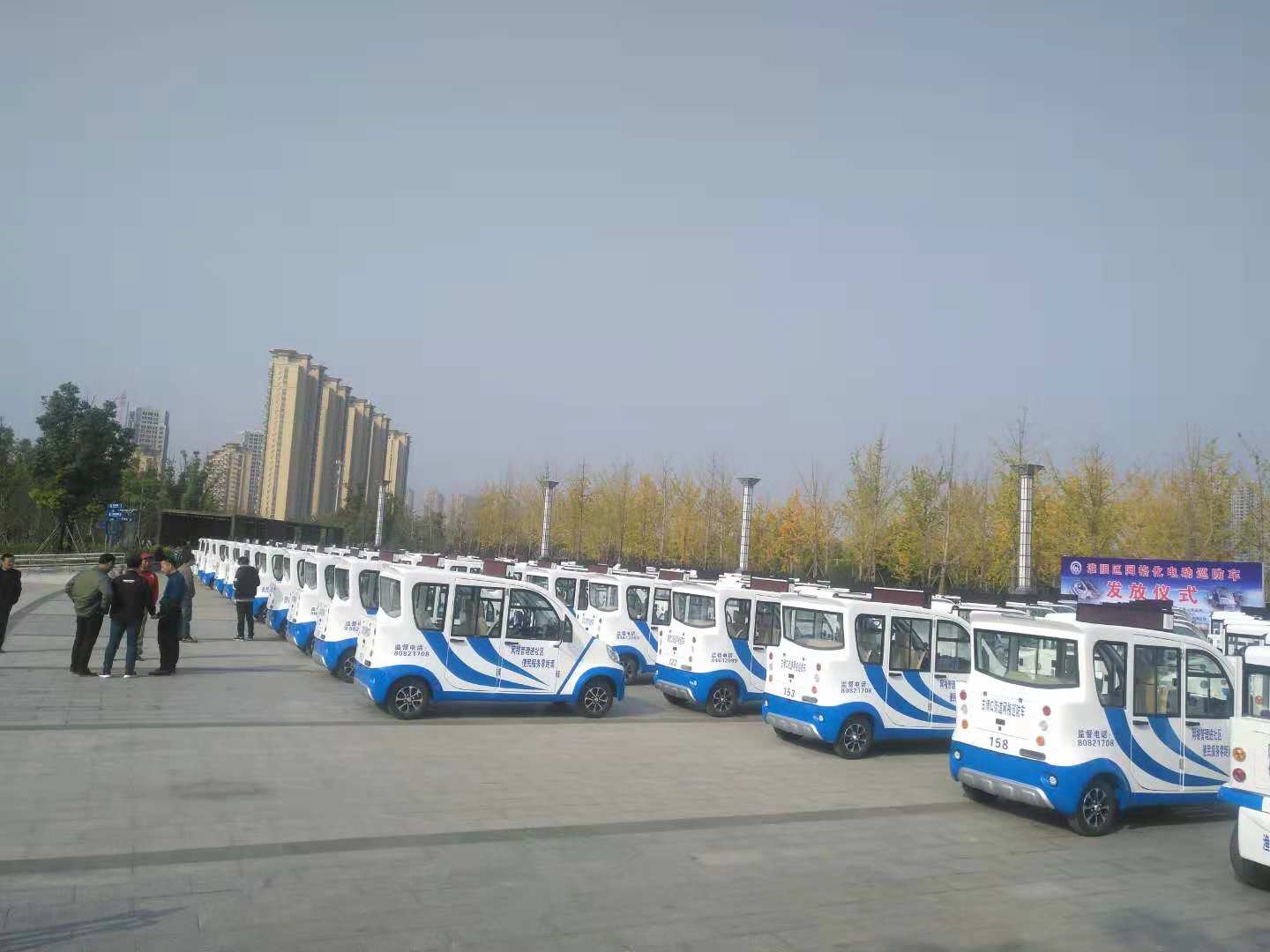 2018月11月13日,綠友集團(tuán)向江蘇淮安市淮陰區(qū)鄉(xiāng)鎮(zhèn)交付25臺四座電動巡邏車。為突出建設(shè)平安安全社區(qū)的決心,舉行了隆重的網(wǎng)格化電動巡防車發(fā)放儀式。