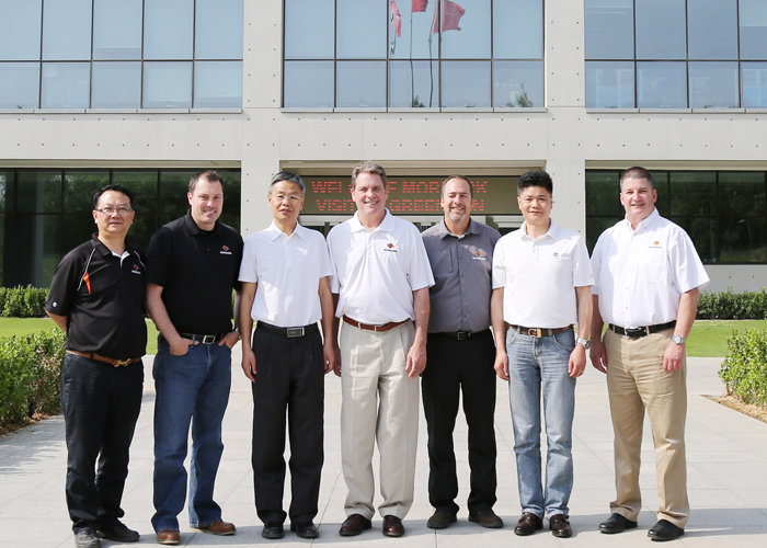 5月8-9日的綠友園,碧空如洗,清風(fēng)獵獵。綠友集團(tuán)迎來(lái)了美國(guó)木霸克公司首席執(zhí)行官戴夫?赫爾、高級(jí)副總裁約翰?福特、工業(yè)設(shè)備國(guó)際部經(jīng)理柯?tīng)柼?麥克穆倫、工業(yè)設(shè)備銷售總監(jiān)邁克爾?斯坦頓一行四人的到訪。