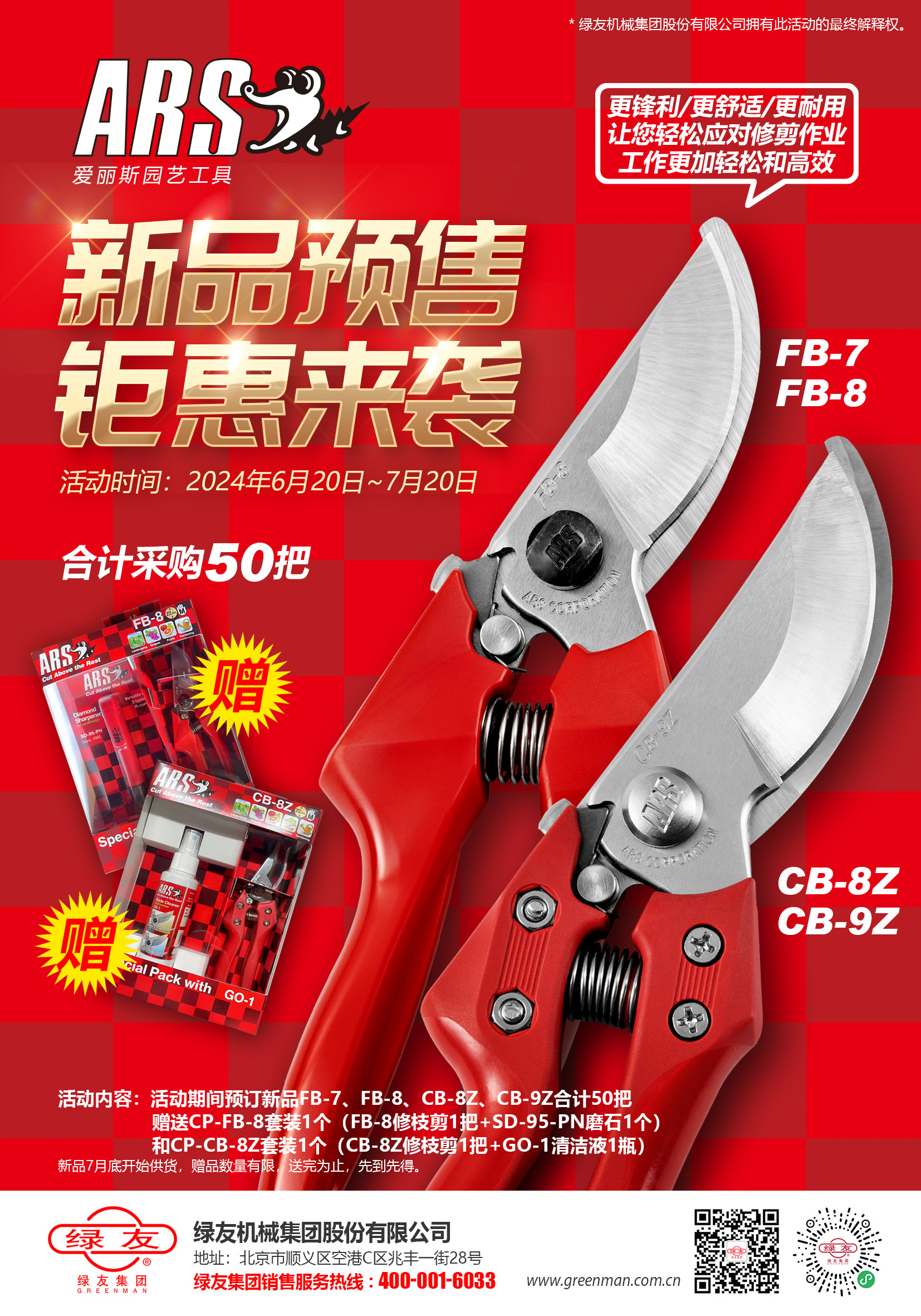 愛麗斯FB和CB系列修枝剪經(jīng)過精心設計和打造預計于7月底全新震撼登場,限時預售活動火熱開啟!