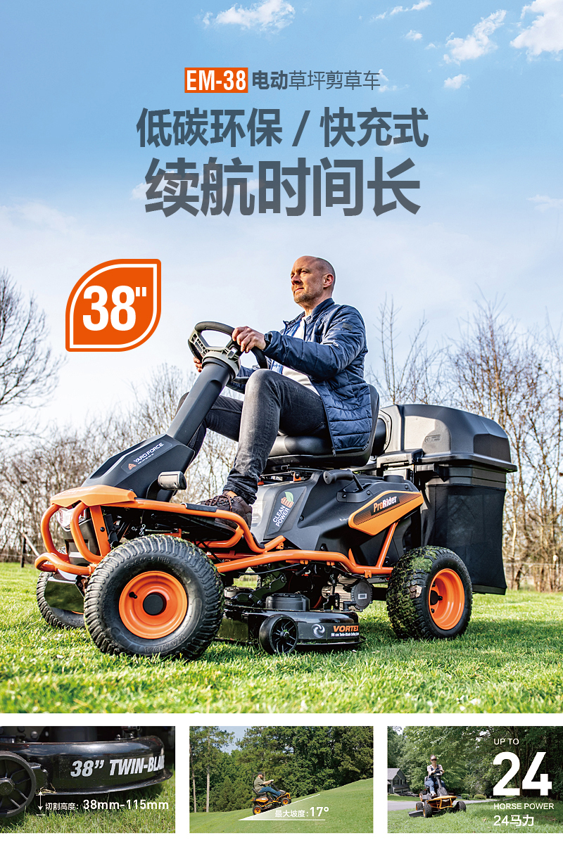 EM38一款低碳環(huán)保的電動(dòng)草坪修剪車(chē),滿足公園綠地日常草坪的修剪要求。