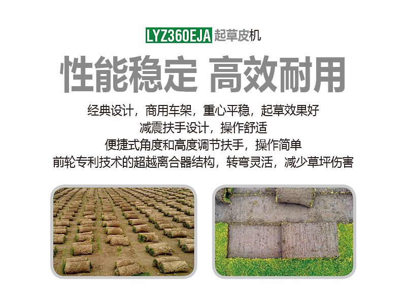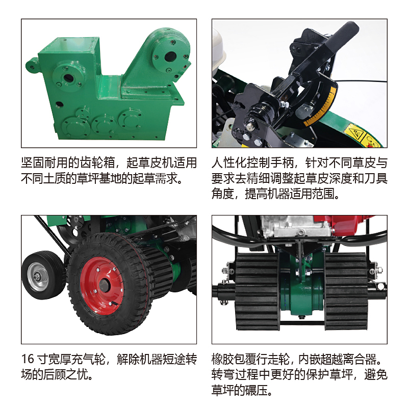 美神起草皮機根據(jù)人體工程學(xué)原理,改進(jìn)了操作方式,扶手增加減震,后輪為萬向輪并配有超越離合器,轉(zhuǎn)彎方便且不損壞草坪,增加了操作者舒適度。本產(chǎn)品可根據(jù)不同草種和不同狀態(tài)草皮隨意調(diào)整起草的深度、角度,效率高。