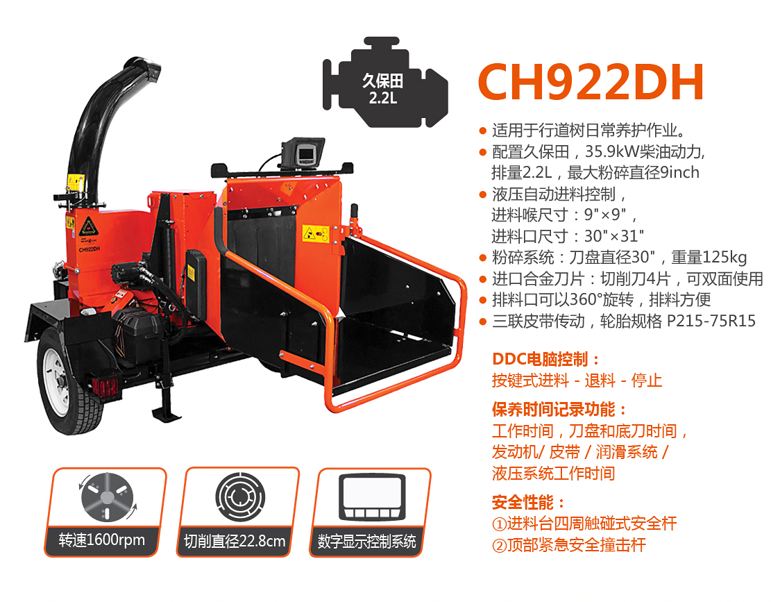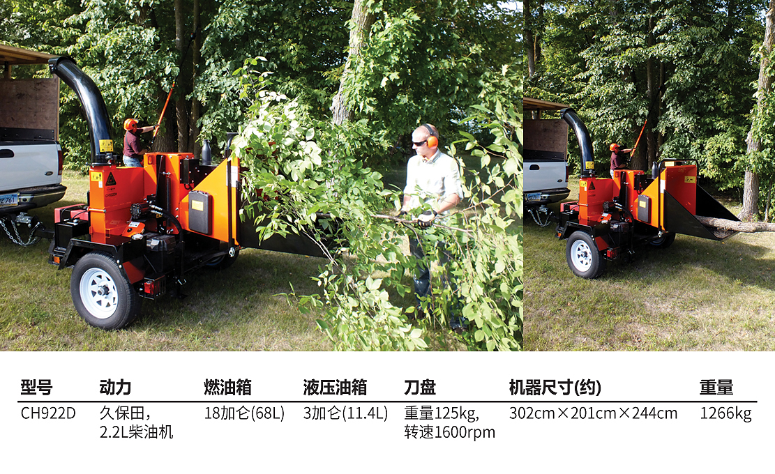 老熊(BEARCAT)品牌樹(shù)枝粉碎機(jī),配置久保田2.2L柴油機(jī),動(dòng)力更強(qiáng)勁,最大可切削直徑23cm樹(shù)枝;