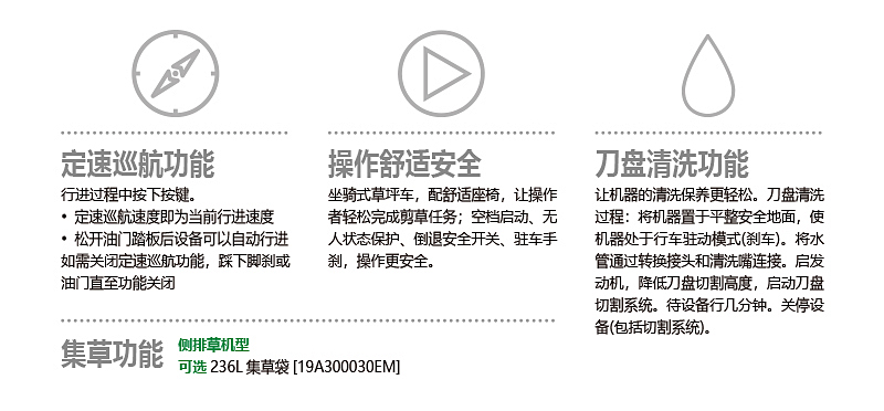 5. 標配側(cè)排草,可選236L雙袋集草裝置
