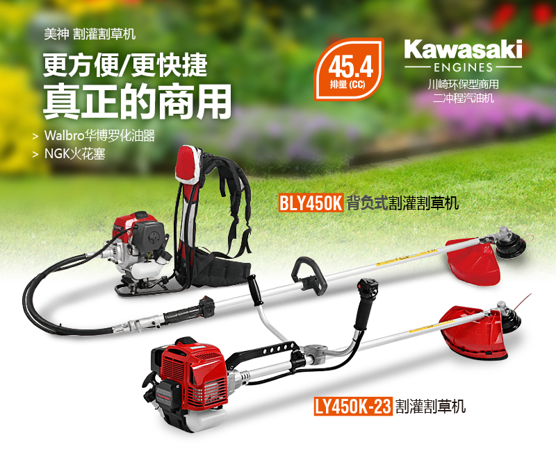 LY450K 是一款商用型割灌割草機(jī),搭載了川崎TJ45E, 45.4cc大排量發(fā)動機(jī),保證了工作的高效、快捷。