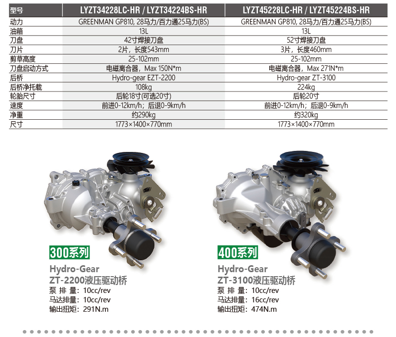 · 選用美國Hydro-gear EZT 液壓驅動系統(tǒng),